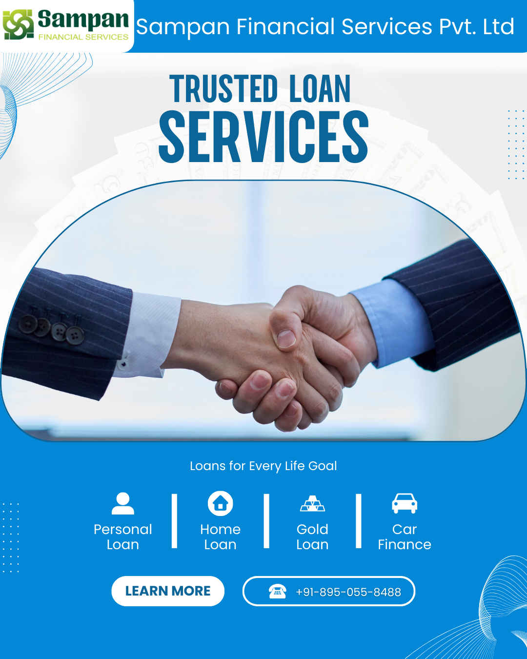 Sampan Financial Services is a Haryana Hisar-based nonbanking financial services company engaged in providing financial services like Home loan, loan against property, school loan,personal loan, business loan, car loan, commercial vehical loan, machinery loan and insurance like life insurance ,health insurance, Gernal insurance.